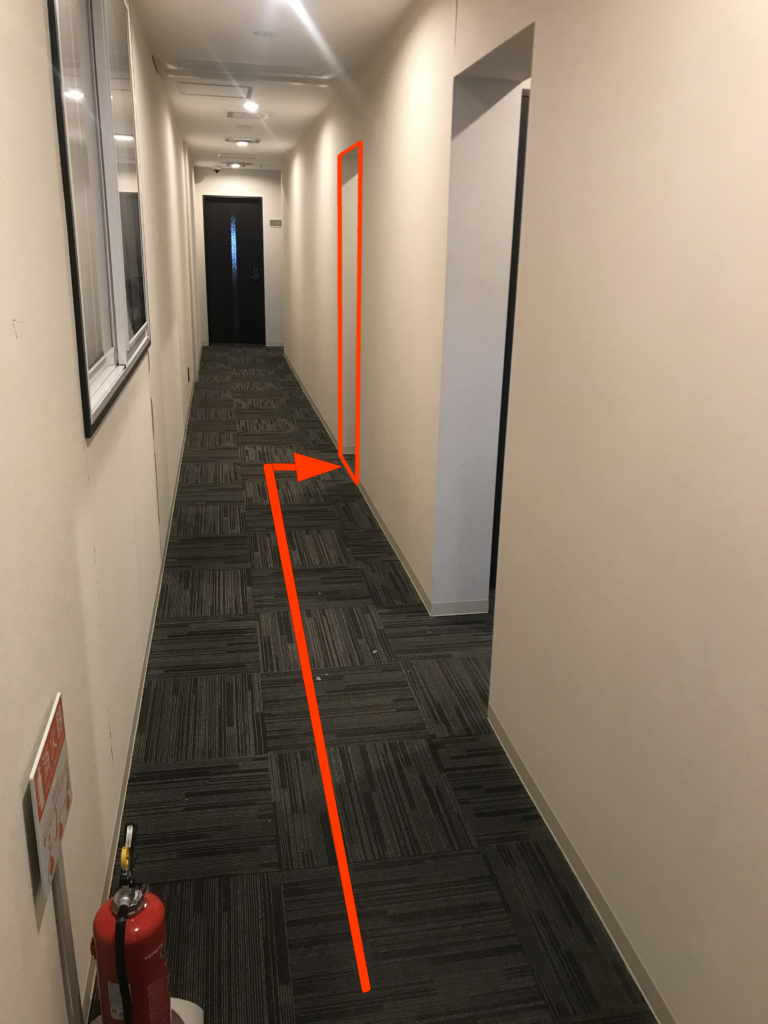 階段を上がっていただき、扉の奥のロビーにてお待ちください。